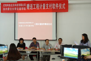 6月3日下午,經(jīng)過一段時(shí)間的洽談和籌備,億通優(yōu)地北京科技有限公司和內(nèi)蒙古大學(xué)交通學(xué)院達(dá)成校企合作協(xié)議,億通優(yōu)地北京科技有限公司向我院師生贈(zèng)送優(yōu)地的正版軟件(內(nèi)蒙古大學(xué)交通學(xué)院學(xué)生每人一個(gè)正式賬戶)。贈(zèng)送儀式在工程管理系工程造價(jià)實(shí)驗(yàn)室舉行。