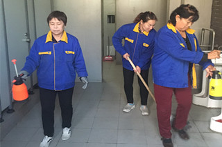 后勤人員對教學樓內、交通樓內衛(wèi)生間進行消毒 |
